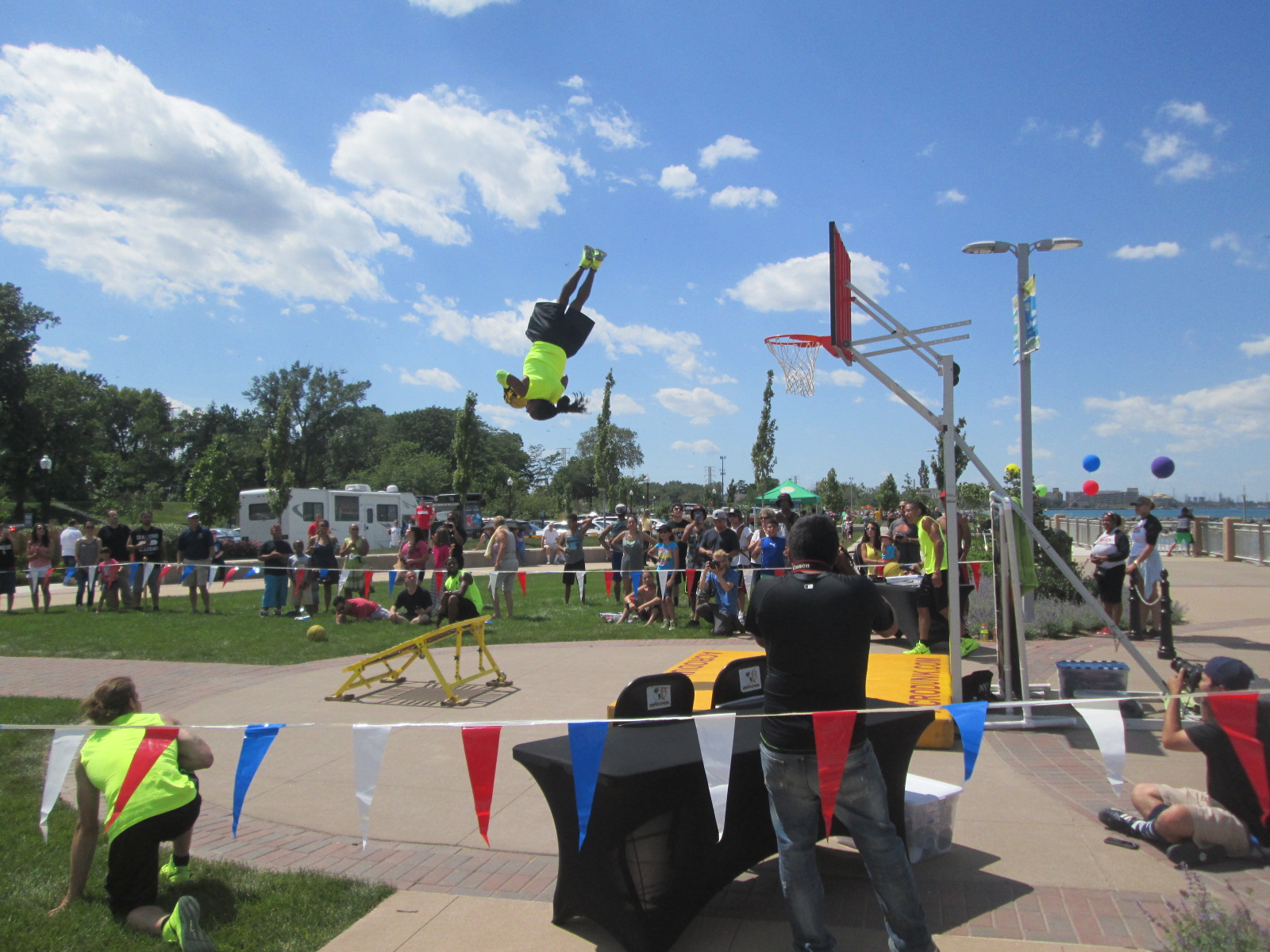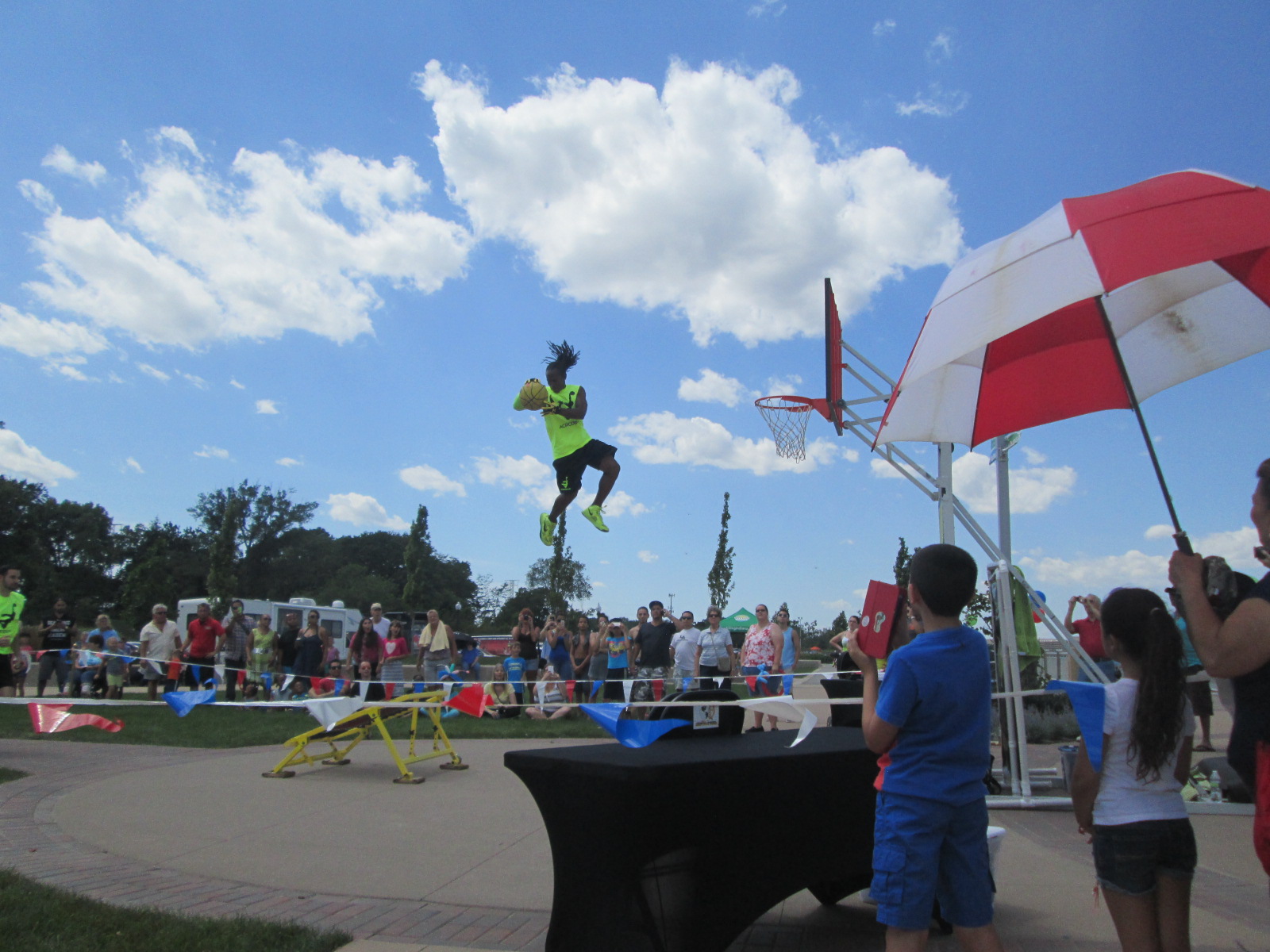 This is the Acrodunk Extreme Dunking Team that performed. It was hotter than blue blazes out there, but this was a lot of fun to see these guys perform. Check out their web site acrodunk.com I had video, but couldn’t upload it 😐